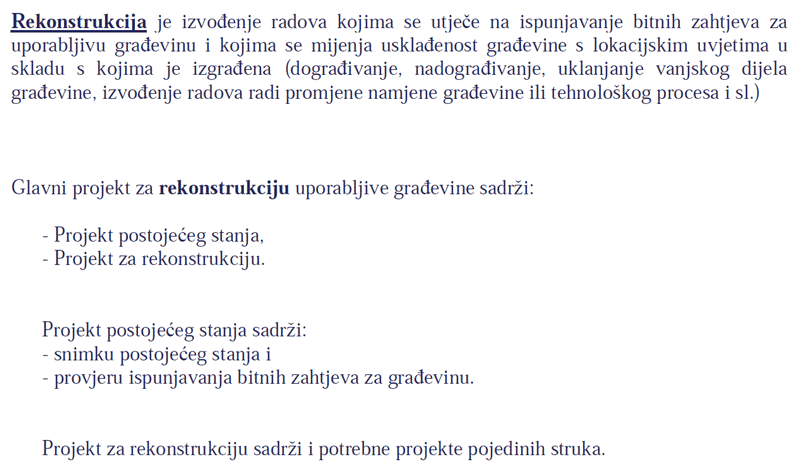 NADZOR NAD IZGRADNJOM I REKONSTRUKCIJOM ZA: